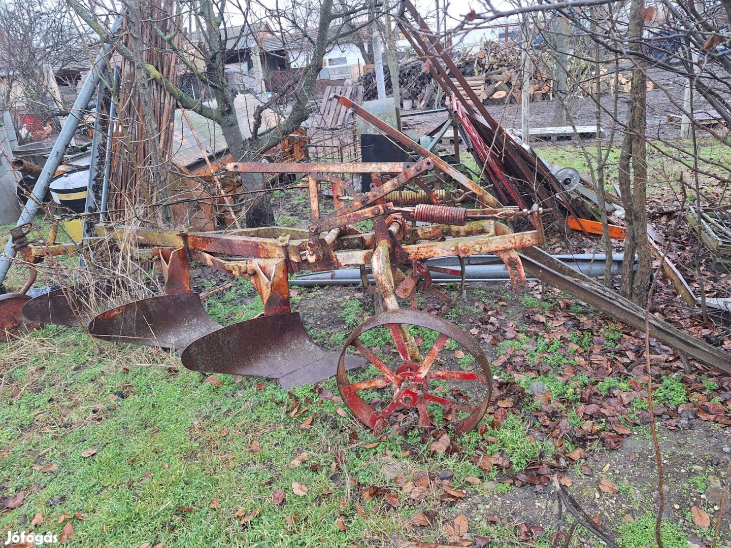 Három fejes vontatott eke eladó. Állítólag DT után való. Eredeti hiánytalan állapotban. Régiség.