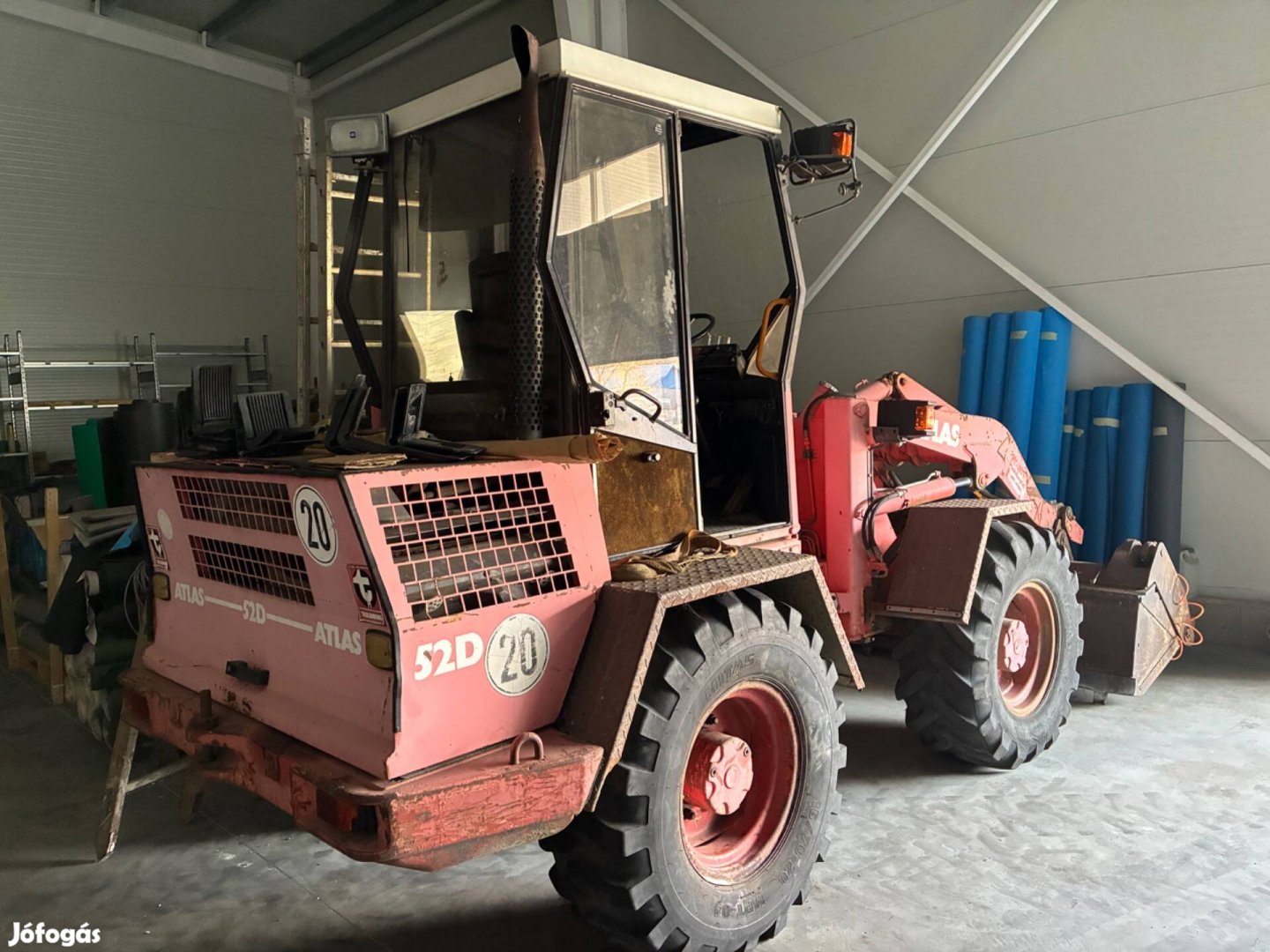 Atlas 52 D homlokrakodó gép nyitható körmös kanál és raklap villa gyorscserélővel. Megkímélt állapotban 20 éve egy tulajdonos.