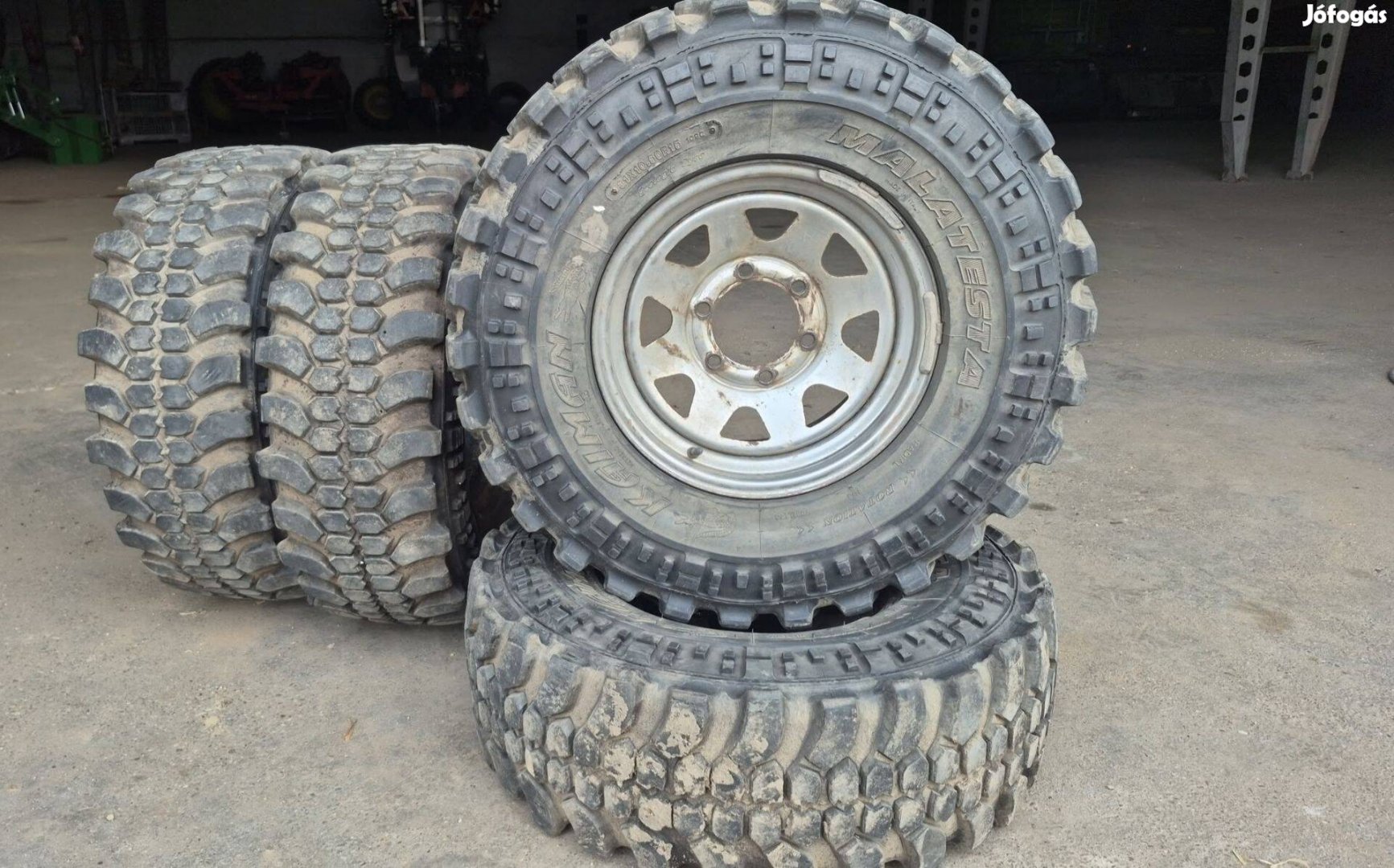 Eladó 4db Malatesta Kaiman 31×10.5r15 méretű (Simex minta) terepgumi 4db Dotz Dakar acélfelnin, szerelve, centírozva. A gumik minta mélysége 12-14mm (70-80%) nincs félre kopva a futófelület. A felni osztóköre 6×139.7, a legtöbb japán terepjáróra jó méret (Ford Ranger, Mazda B, Toyota Hilux, régi Land Cruiser, 4Runner, Nissan Patrol y60,y61, Terrano II., Navara, Mitsubishi Pajero, L200).