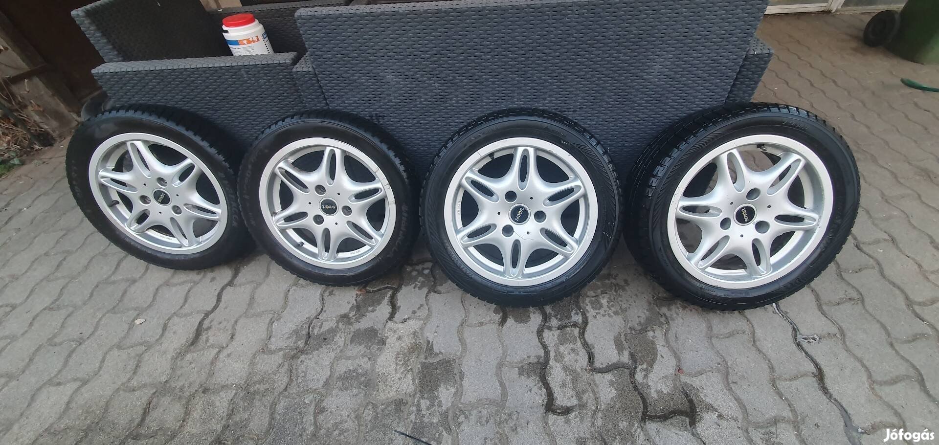 Eladó a képeken látható Smart alufelni garnitúra téli gumikkal.
