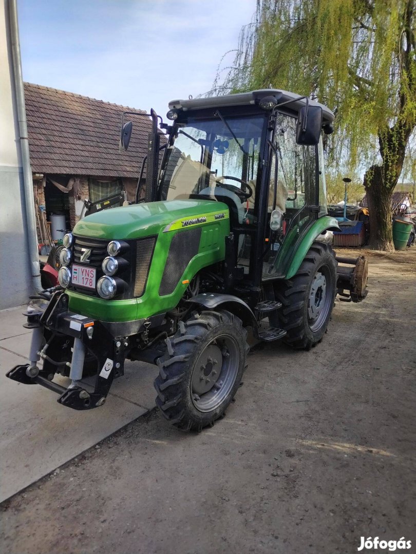 Eladó! 2021 Shery Zoomlion rk 504 4x4 kis traktor.Homlok rakodóval,raklap villával és bála csipeszel valamint gyári első három ponttal egyben eladó.Kevés üzemórával 268,5.Lég fékes 1 körös,légkondival,12-12 váltóval,forgófejes pótkocsi alsó és felső vonóval,rádióval,osb csatlakozóval eladó.Nincs + áfa.Érd :.