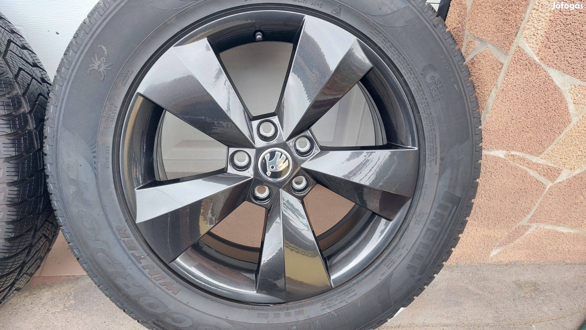 Eladó , újszerű gyári 17" Skoda Kodiaq-Karoq alufelni garnitúra , szép esztétikai és hibátlan szerkezeti állapotban ,jó állapotú téli gumikkal.