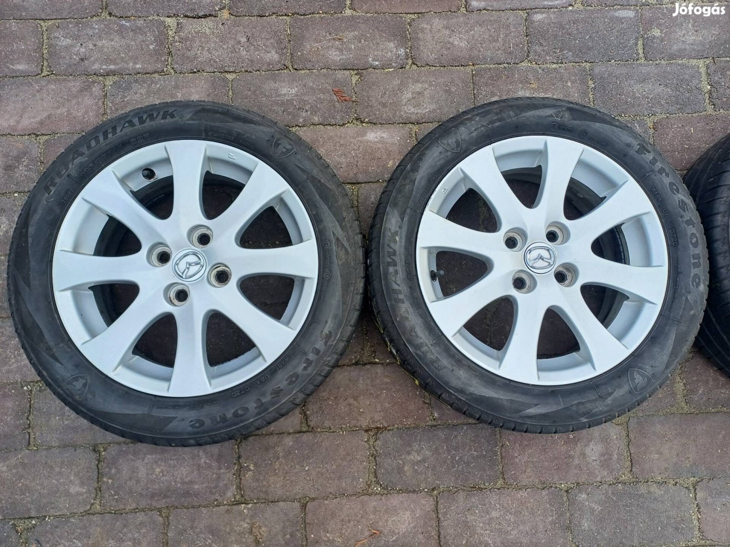 Eladó a képeken látható hibátlan állapotú gyári Mazda alufelni szett nyári gumikkal.