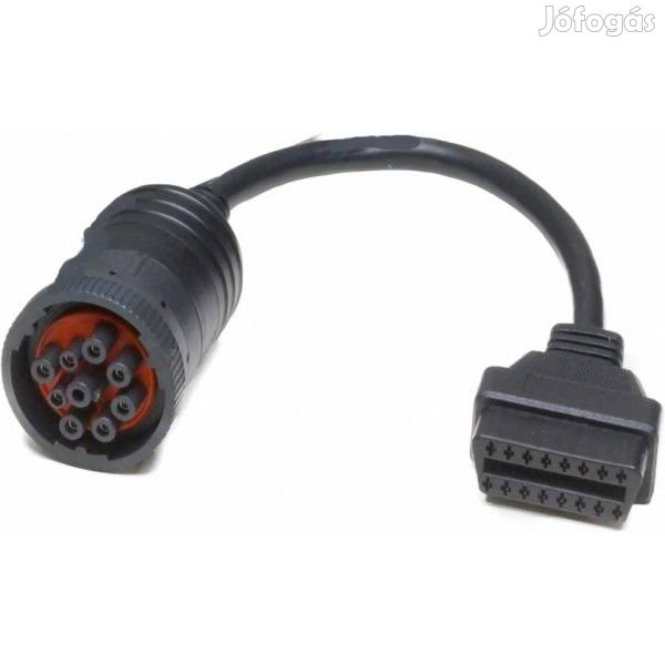 Teherautókhoz használható OBD átalakító kábel, ami 9PIN deutsch J1939 anya és OBD OBD2 apa véggel rendelkezik.
