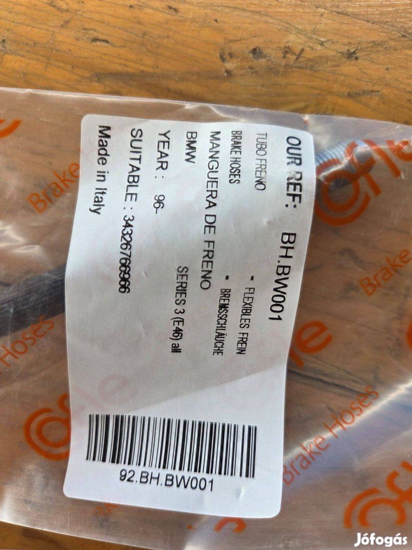 Eladó BMW E46-hoz való első gumi fékcső, Cofle márkájú, bontatlan, új állapotban.