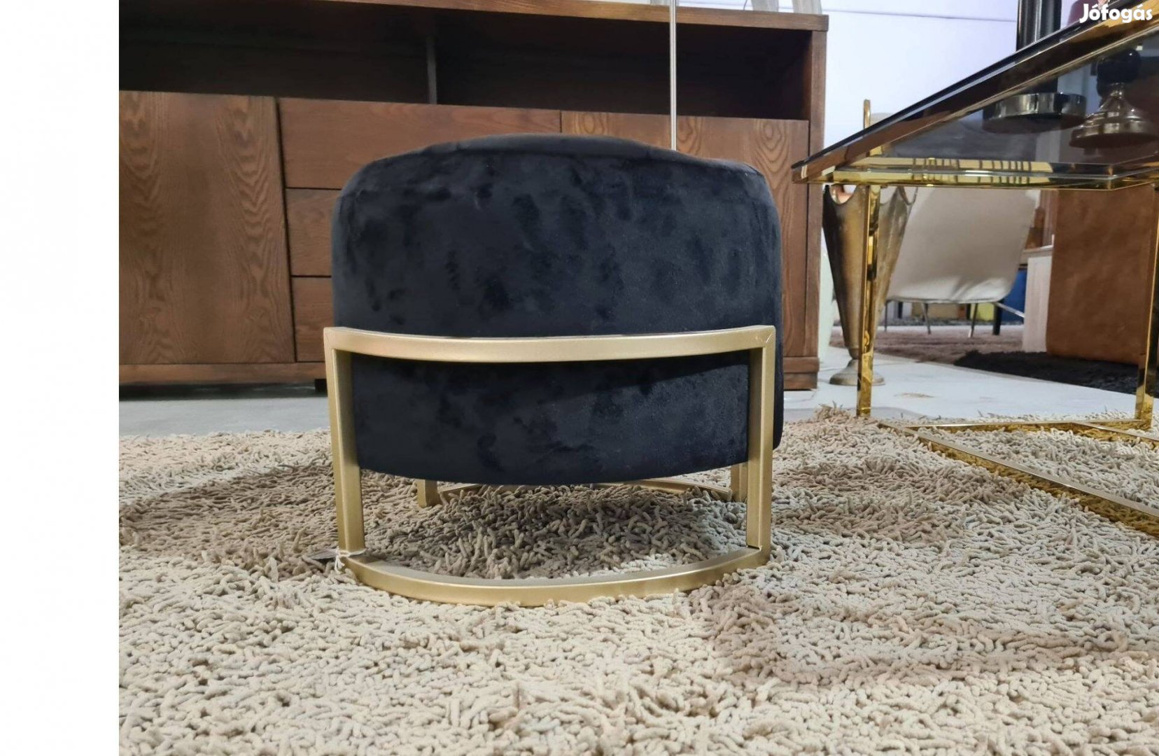 Elegáns kör alakú ülőke , modern design , fekete bársony szövettel