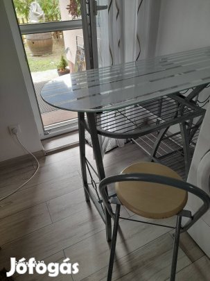 Reggeliző asztal üveg lappal és két székkel eladó.