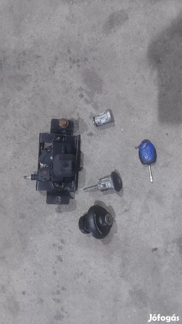 Motorháztető zár, gyújtáskapcsoló, bal első zárhenger és tanksapka kompletten hozzátartozó kék kulccsal együtt.
