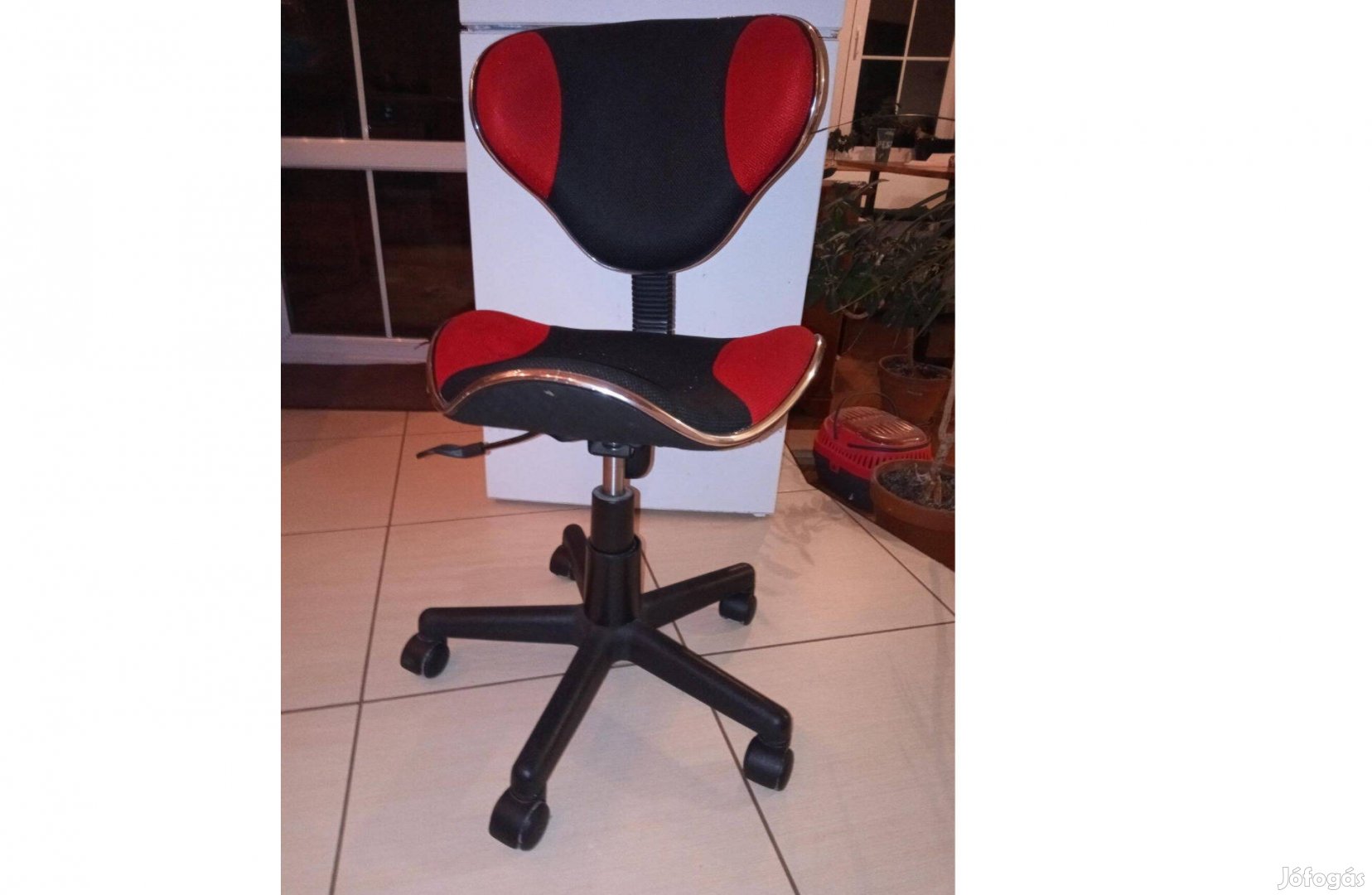 Jó állapotban lévő, állítható ülésmagasságú gyerek forgószék. Teljes magassága támlával: 85 cm.