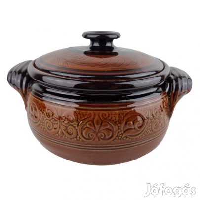 Mérete: ~31 cm magas; 37,5 cm teljes magasság fedővel együtt; 26,5 cm felső átmérő; ~29 cm széles test; 39 cm teljes szélesség fülekkel
