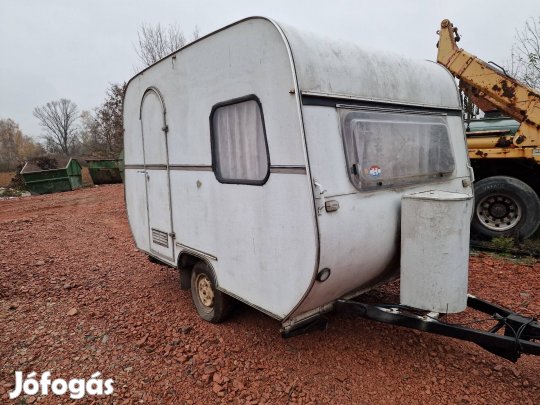 Eladó lakókocsi 4 fősNem ázik be. Telepítésre. Elöl és hátul is ágyazható. Mosogató tűzhely hűtő van benne. 4.5 méter a felépítmény.Áram alá csatlakoztatható így világítás is van benne. Horgászatra irodának jó.Szállításban tudok segíteni.