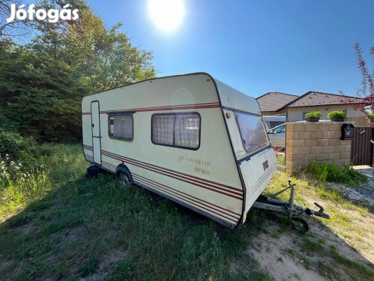Eladó lakókocsi szép állapotban. 4 személyes 4,5 méteres. Elöl 4 személyes étkező ami 2 főre ágyazható. Középen konyha tűzhelyel mosogatóval hűtővel. Fűtésről gázkonvektor gondoskodik. Hátul kisebb étkező az is 2 főre ágyazható Mellette fürdőhelység kézmosóval be épített wc-vel melegvizes tusolóval. Telepítésre ideális Szállításban tudok segíteni.