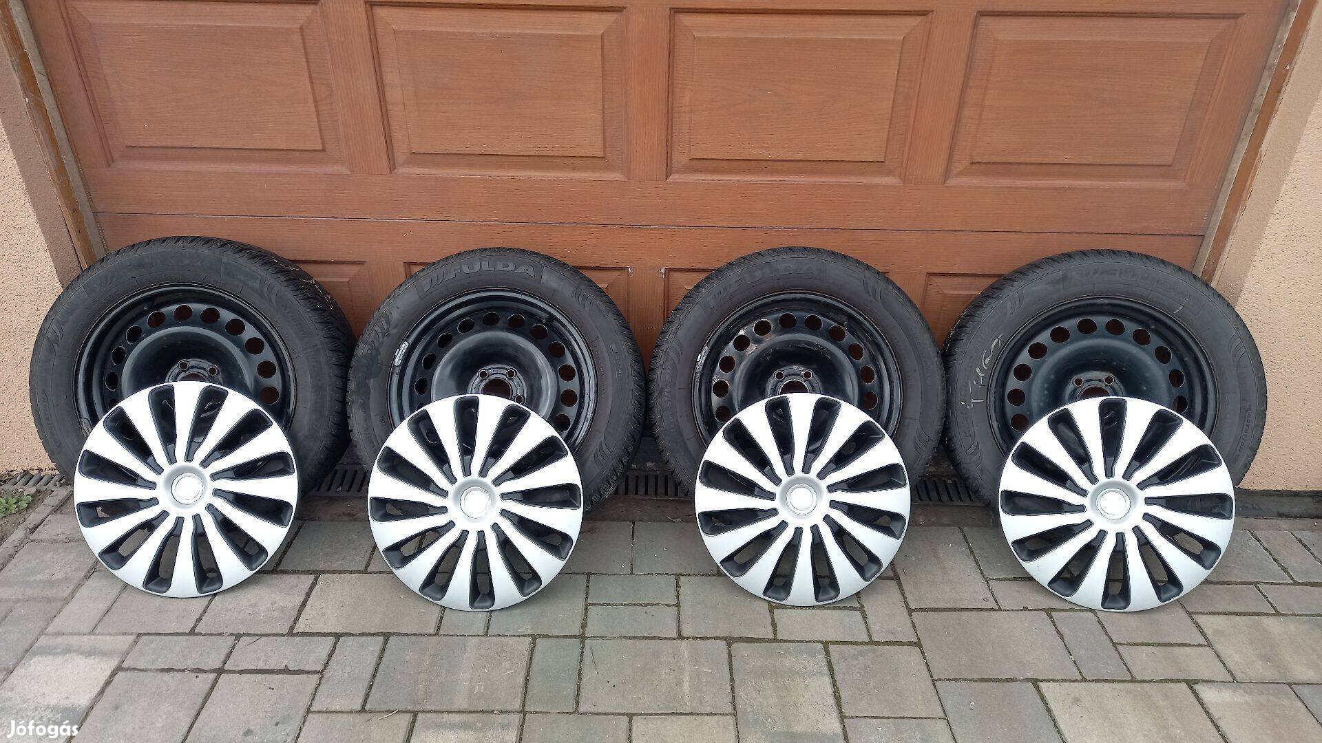 Eladó a képeken látható jó állapotú 17" lemezfelni garnitúra, Fulda 235/55 R17 téligumival szerelve (profilmélység: 4,5 - 6 mm) Ford Kuga mk2-n futott + 4 db dísztárcsa.