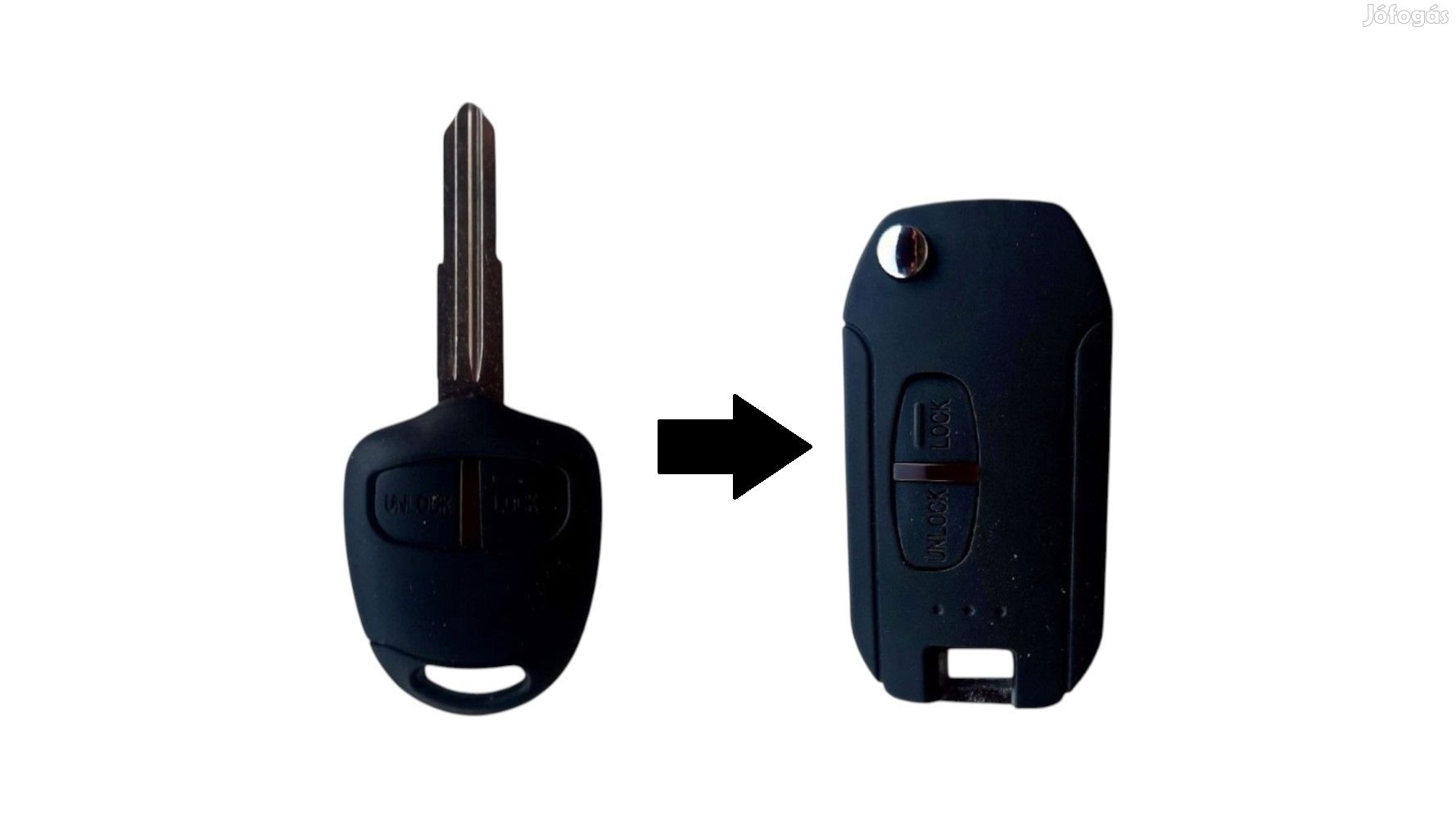 Elektronika nélküli módosított bicskakulcs átalakító MIT8 vagy MIT11 nyerskulcs szárral, 2 gombos távirányító házzal, emlémával.