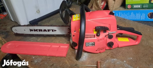 Amúgy olajoz, működik a láncfék, lap és lánc eredeti, esztétikailag is szép; eddig nem sok munkát látott, csak a garázs mélyén porosodott évekig.