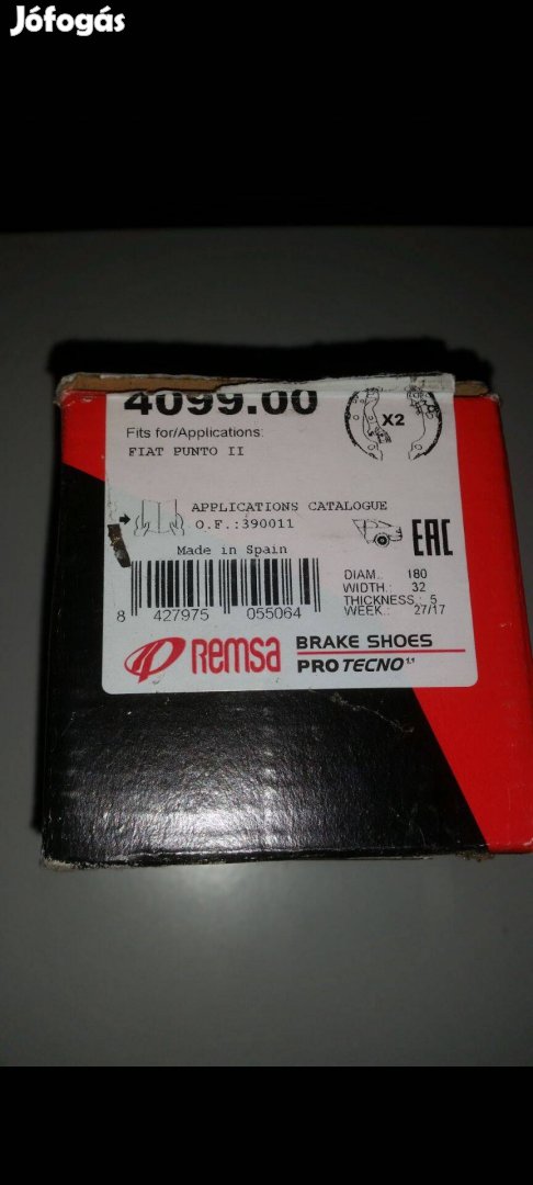 Eladó új, Remsa fékpofa készlet Fiat Punto dobfékhez.