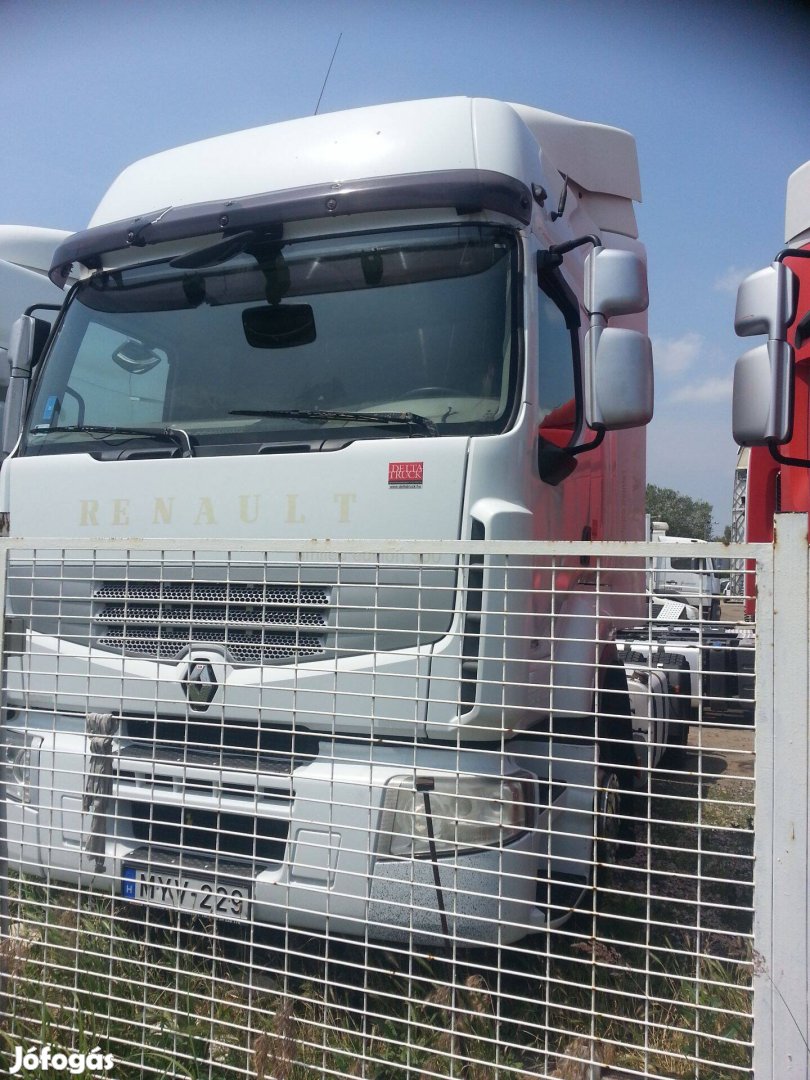 A képeken látható normálkapcsolású 2008-as évjáratú euro 5-ös Renault Prémium 450 DXI bontandó alkatrészei eladók. PL: Jó füstmentes motor (880.000-km), autómata váltó, electronikák, turbó, injektorok, motorvezérlő, komprexor, kormánymű, agyak, hidak, difi külön is, féknyergek, pneumatikus szelepek, fülke, ajtók, szpojlerek, adblu kifufogó dob, alú üzemanyag tankok, nyeregszerkezet..........STB.Érdeklödni Hétvégén Is! Kérdezzen! TEL: