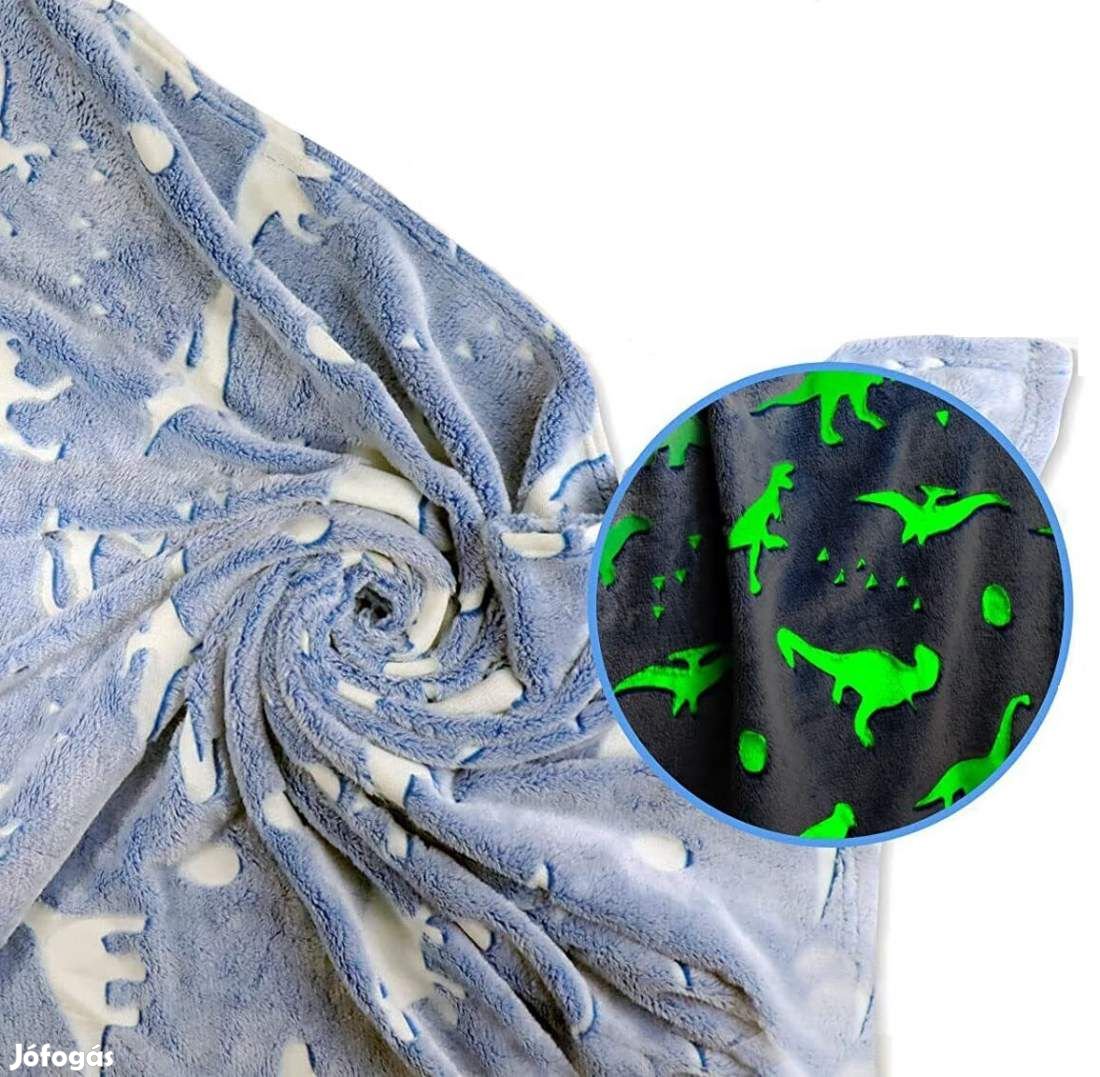 Sötétben világító dínós 200x230cm plüss takaró, pléd wellsoft szürke