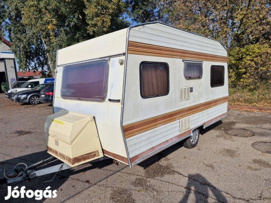 Mindket oldalt 2 személyes fekhely mely egyik oldala fix fekhely - masik oldala étkezővé is alakítható - középen egyik oldalt konyha - másik oldalt gardrob, hűtő, Tv és mosdó - 1987 évjárat - 2,1m szélesség - 4,8m lakrészhossz - 6m teljes hosszal - 190cm belmagasság - 1000 kg önsúly - összsúly - hátsó ablaka javított a többi ép - sehol nem ázik be - vonófeje jó kitámasztókereke is - azonnal vontathatóan- adásvételi szerződéssel - 549.000 Ft irányáron eladó.