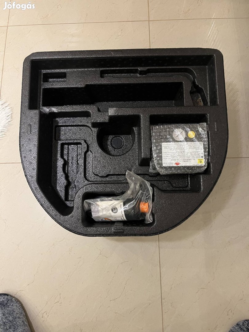 Eladó Toyota Corolla csomagtartó hungarocell szerszámtartó betét, benne gyári kompresszorral és defektjavító készlettel.