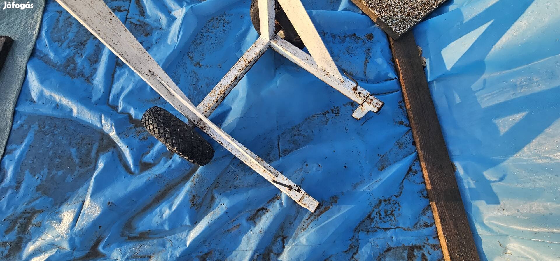 Eladó csónakmotor tároló puha gumi kerekekkel/Felfujható/a könnyebb tolásért puhább felületen.elsö lábai kihúzhatoak stabilitás miatt.