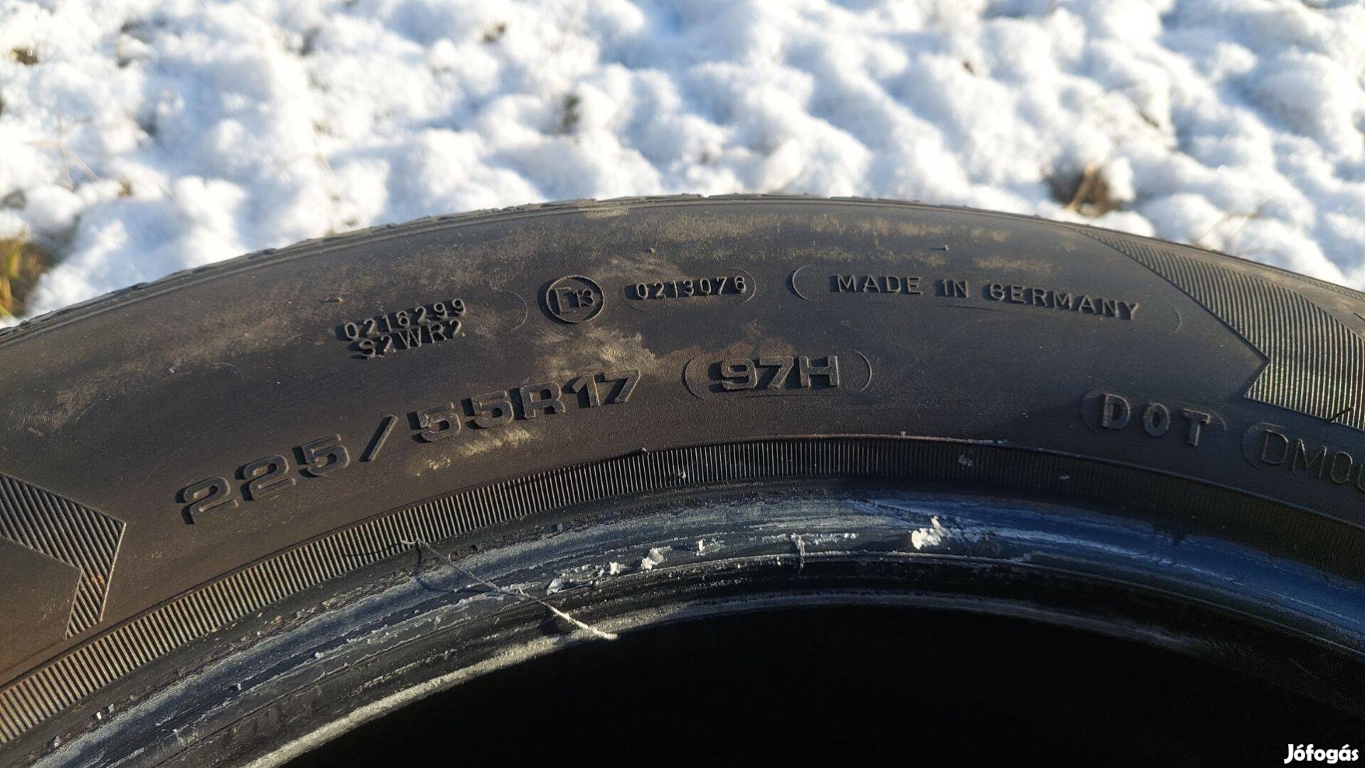 225 55 R17 használt téli gumi garnitúra 35 000 Ft-ért eladó (a 4db 35000) . BMW X1 -en volt. Futófelületen a profilmélység 7mm. A többi adat megtalálható a fényképeken. Érdeklődni telefonon illetve e-mailben lehet.