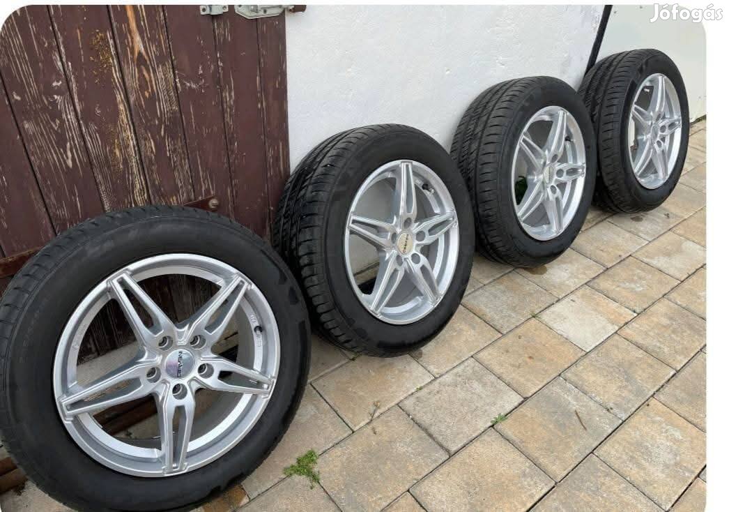 Eladó a képen látható 5x108 ET50 középfurat 63.4 alufelni garnitúra egy szezont futott Nexen nyári gumival 205/55 R16 mind a 4 kerék hibátlan.