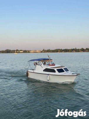 Engedély nélkül használható. Kabinos Kis hajó.4 felnőtt alvó hely van benne.Jelenleg elektromos, (motor -+munka akksi 2db napelem ) de igény esetén van hozzá árbóc is. Illetve sólya kocsi.Egyéb extrák megbeszélés tárgyat képezik. Balatonon van.