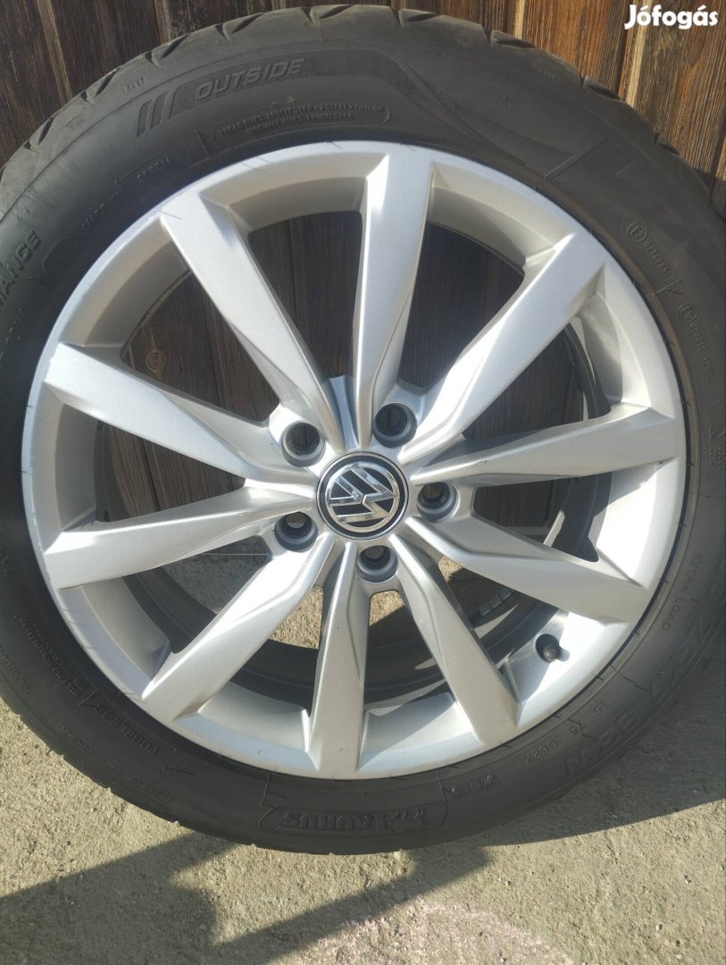 Eladó szép állapotú használt gyári VW alufelni szett nyári gumikkal. Futásuk jó, ellenőrzött. Mind a 4-felni külön fotózva, 1-db gumi szálszakadt.
