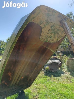 Eladó idén készült fa csónak 4 m hosszú alja 110 cm felül 136cm tölgyfa orrtöke far tőke balkonyok belül ipari lazurral kezelt kívül pedig 3 sor üveg paplan 4 sor epoxi gyanta védi .