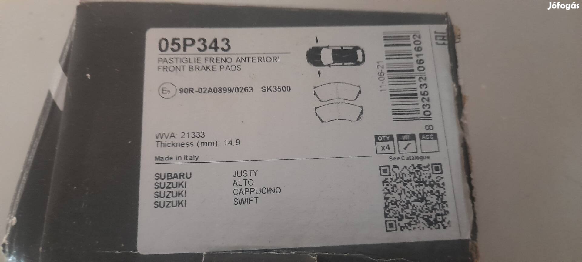 Eladó fékbetét garnitúra Suzuki Swift 1989-2004-ig gyártott típusú gépkocsira.