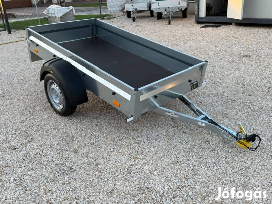 Eladó laprugós, lengéscsillapítós, 1 tengelyes, Knott futóműves, platós utánfutó! Erős hegesztett acél utánfutó. Magyar termék !!!