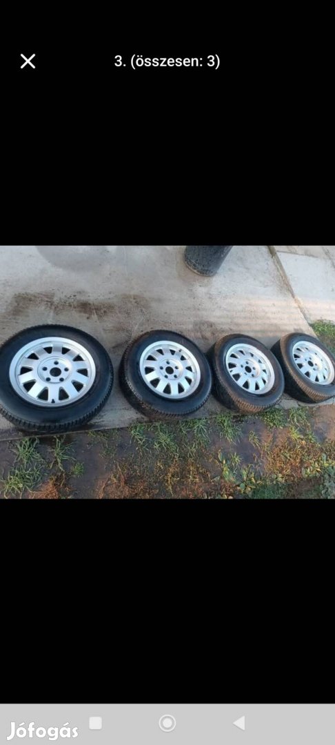195/65/R15 téli gumikkal,minimális sérülésel,a használatát nem befolyásolja.
