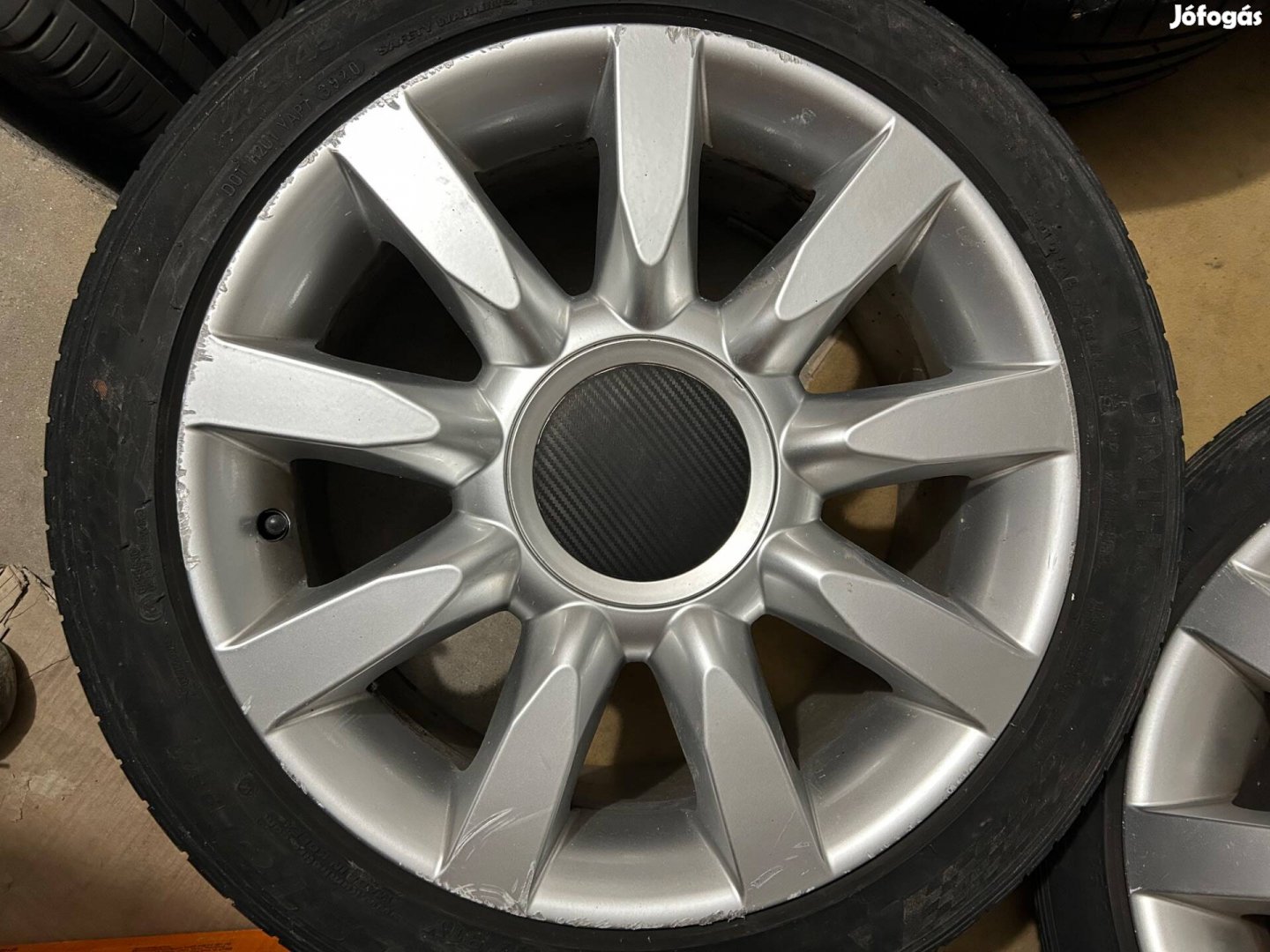 Eladó 17 colos alufelni garnitúra, 5x112-es osztókörrel és (5x100-as osztókörrel -ebben nem vagyok biztos-) audi A4-en volt, de jó VW, Seat, Skoda gépkocsikra is. A felnik itt ott finoman sérültek -lásd a képeken-, de alapvetően nincs nagy bajuk, szépek, nem ütnek. Az összes felnikupak megvan hozzá. A gumik 225/45-ös Kumho ps 71-esek, 2020 39. heti gyártásúak, még egy szezont elmennek.