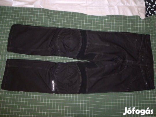 Eladó a képeken látható bőr motorosnadrág. Keveset használt, szép állapotban van. A derekánál a gumi már nem rugalmas. Protektorok a térd-lábszár részen; szivacsprotektor a csípőknél. Térdkoptató tépőzárazható rá. Gumírozások a kényelemért. Dzsekivel összecipzározható.