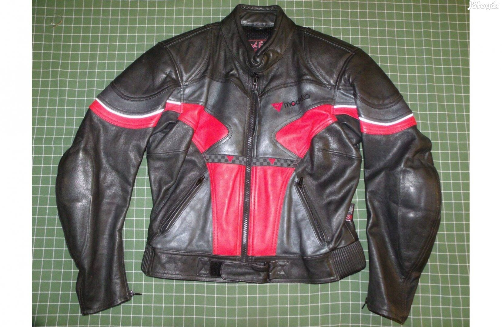 Eladó a képeken látható Modeka női motorosdzseki. Keveset használt, szép állapotban van. Protektorok: váll, könyök-alkar. Gerincénél protektor részére ki van alakítva a zseb. Nadrággal összecipzározható: rövid és körkörös cipzár is van rajta; a cipzár mindkét fele a dzsekin van, rávarrhatod a nadrágodra, ha nem kompatibilisek.