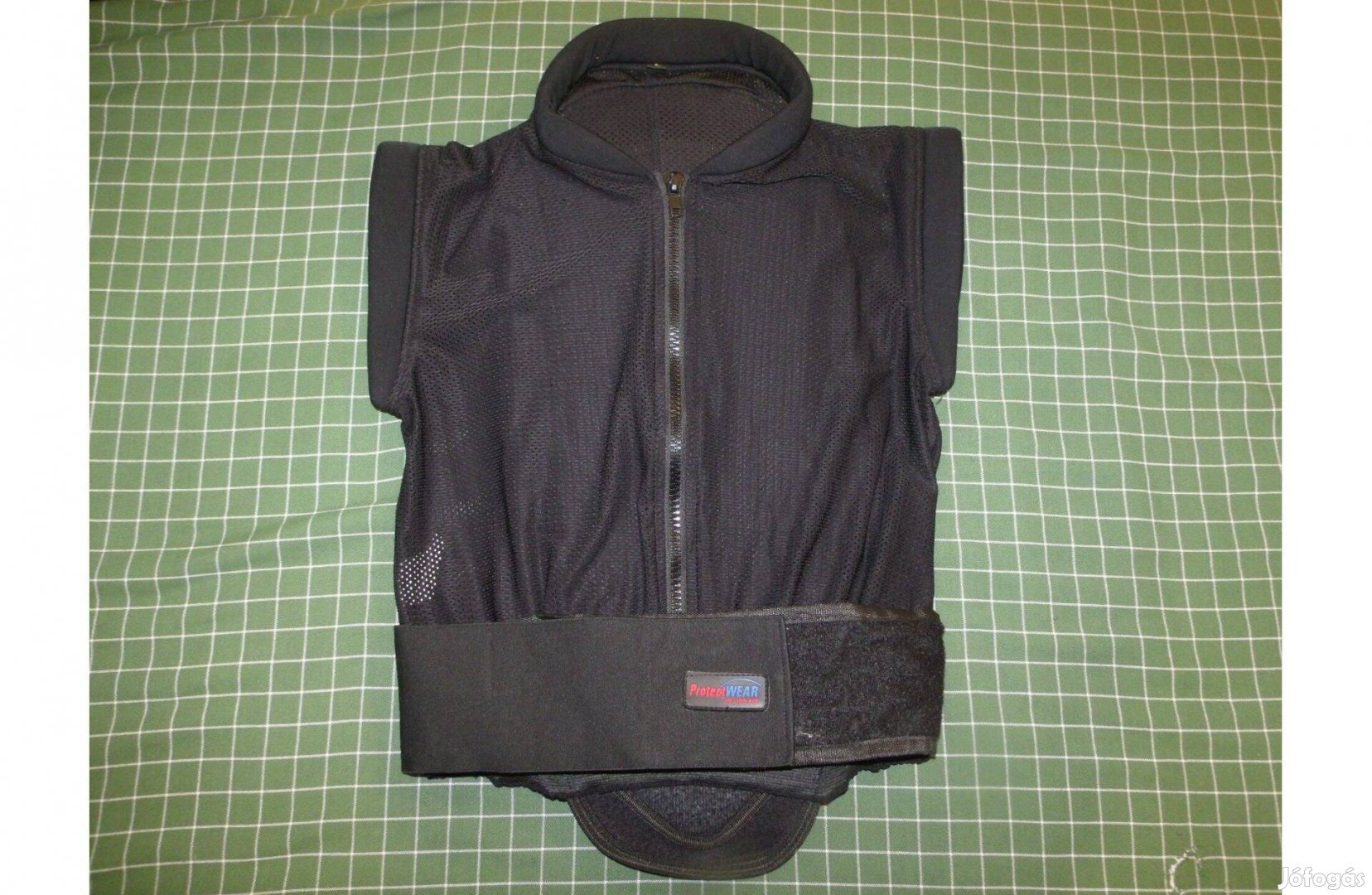 Eladó a képeken látható protektormellény. Téli sportok, kerékpározáshoz, lovagláshoz és motorozáshoz is használható. Használt, de jó állapotban van. A rugalmas és jól szellőző anyagának és a mellényszerű kialakításnak köszönhetően kényelmes viselet. A derék körül tépőzáras, gumírozott rögzítés van (ezt egy kis részen elengedte a varrás, fotóztam).