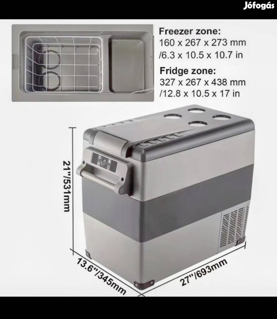 Ez a hordozható hűtőszekrény 55 literes/58 literes űrtartalommal elég nagy ahhoz, hogy 60 doboz 330 ml-es/11,1 floz-os kólát, 36 üveg 550 ml-es/18,6 floz-os italt és 18 üveg 750 ml-es/25,3 floz-os vörösbort elférjen benne. Hűtőszekrényünk CE-minősítéssel rendelkezik, számos italt, zöldséget, gyümölcsöt, tenger gyümölcseit, húsokat, bőrápolási termékeket és anyatejet tárolhat benne.