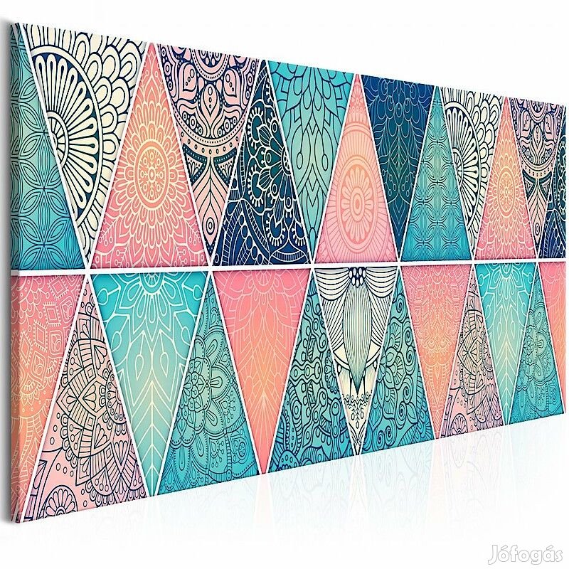 A magas minőségű "Keleti mintás háromszögek (1 darabban)" képet speciális flíz vászonra nyomtatjuk. Ez a sok, boltunkban megrendelhető eredeti minták egyike.