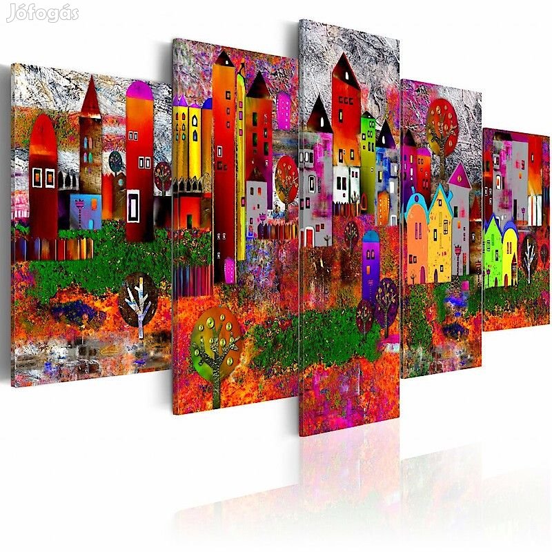 A magas minőségű "Színes kisváros" képet speciális flíz vászonra nyomtatjuk. Ez a sok, boltunkban megrendelhető eredeti minták egyike.