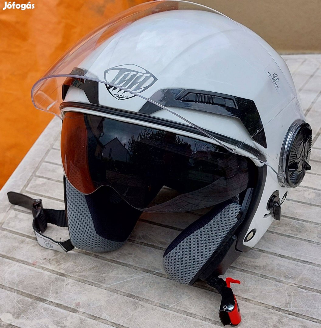 Eladó egy a képeken látható fehér színű, 55-56-os méretű női motoros bukósisak. Nem volt használva.