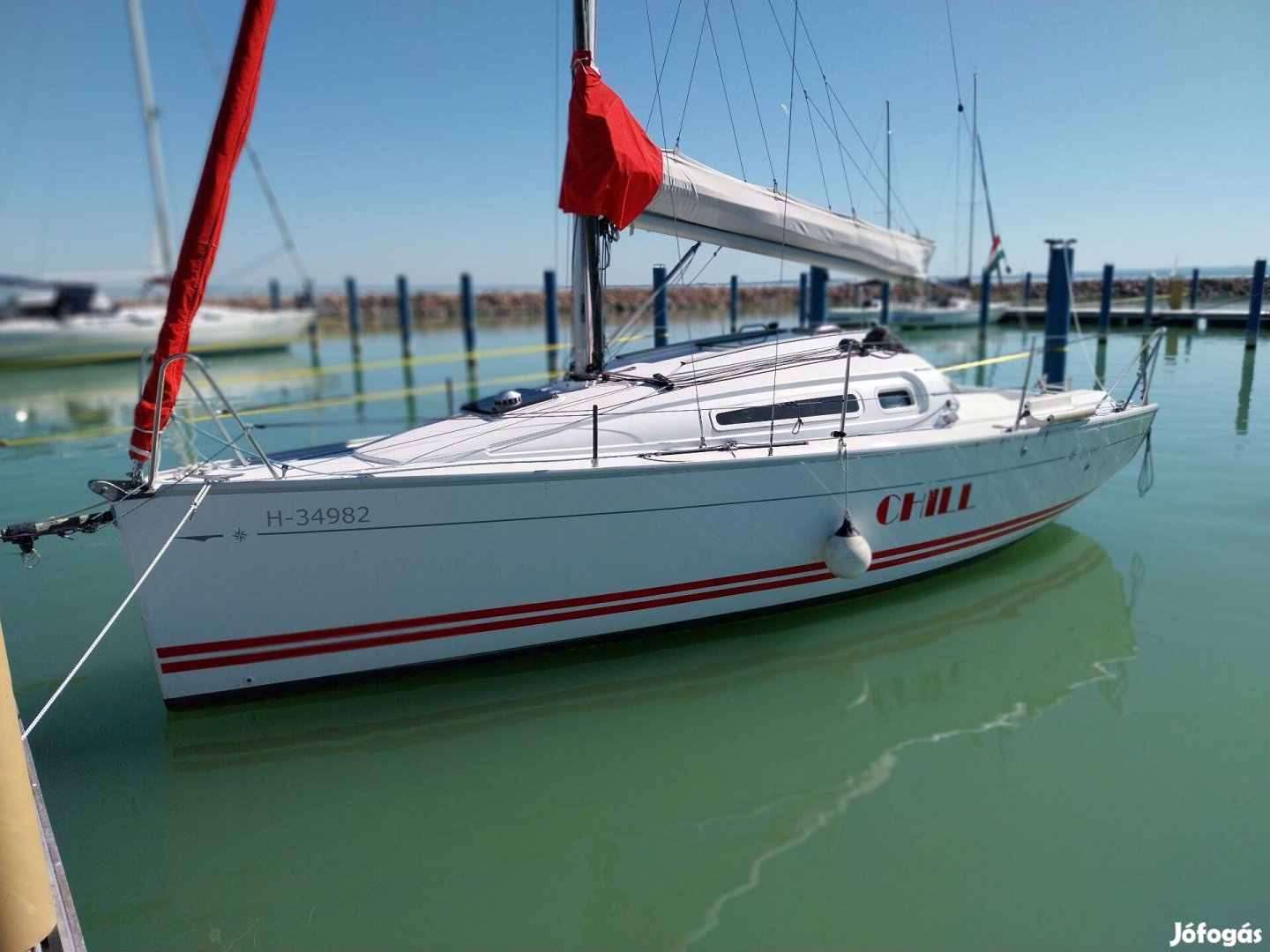 Féltúra-félverseny hajó. 7,8x2,95 m, merülés 1,50 m. Befogadóképesség 6 fő, 4 fekvőhely. Merev vorstag, rollgénua, génua persening. Carbon bowsprit, gennaker. Code zero. Carbon spi rúd, spinnaker. Nagyvitorla + lazy Jack. Versenyzésre felszerelve. A használati célnak megfelelő, minőségi kötélzet. Sebességmérő, mélységmérő, szélmérő, autopilot. Vízrendszer, mosogató, gáztűzhely, hűtő. Mosdó, pumpás wc, szennyvíztartály. Yanmar 1GM10 típusú, 9 Le diesel motor. 220 V csatlakozás, automata akkutöltő. Teljes kikötő-horgonyzó felszerelés, összes hatósági tartozék. Téli takaró. Kikötőhely átvehető. Megtekinthető időpont egyeztetés után bármikor, hétköznap is. Érdeklődés: telefonon.