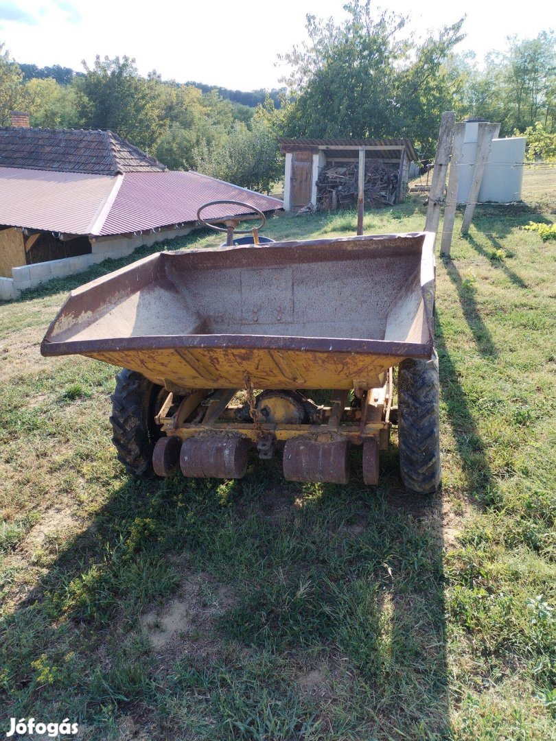 Eladó dömper. Nem dícsérem,aki ismeri tudja mire képes. Egy hengeres dízel. Pöccre indul. A kormánymű kicsit lóg. Meglátszanak rajta az évtizedek. Új Kinyomócsapágy. Egyszerüen indul,jön megy ahogy kell. Az ár fix. Köszönöm