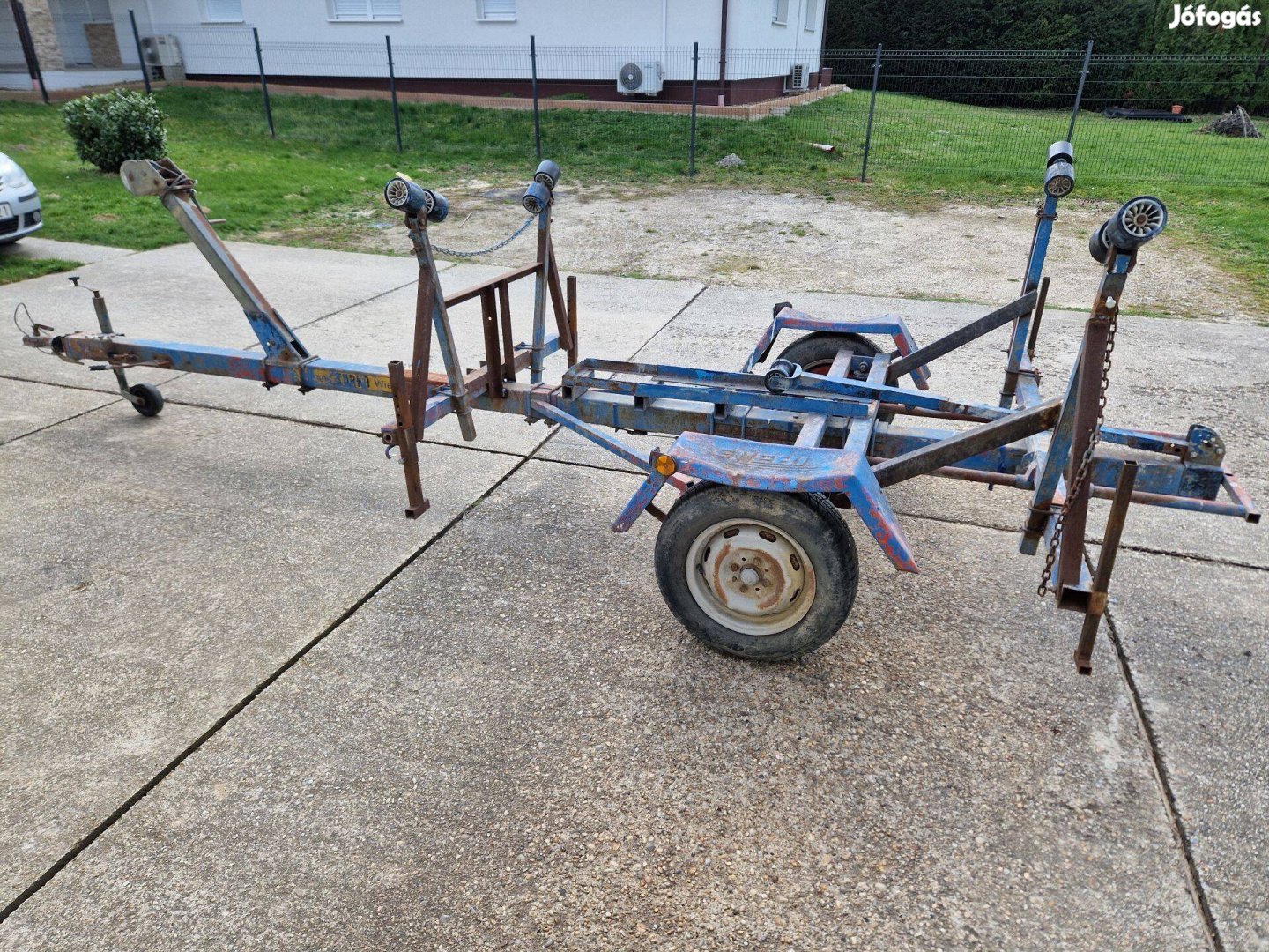 Rendszám nélküli vontatható hajótároló kocsi